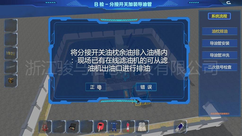 在軟件中,用戶可以體驗到每個設(shè)備的維護工作,包括變壓器、分接開關(guān)、儲油柜、散熱器、套管、瓦斯繼電器、溫度計和在線濾油機等關(guān)鍵部件。通過模擬體驗,掌握變壓器維護操作。